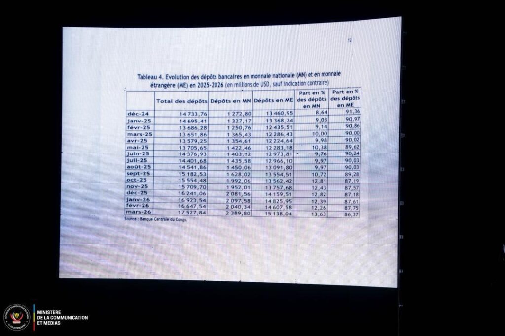 « Nous avons une croissance soutenue de 5,8 % pour 2025 et nous projetons l’année 2026 à 6,2 %. Nous avons une inflation maîtrisée. Le taux d’inflation annuel s’établit à 2,36 %. Nous disposons de réserves internationales conséquentes : 7,7 milliards de dollars. Si l’on observe la courbe de confiance des opérateurs économiques, elle est en hausse mois après mois. Cela se traduit également par une accélération des dépôts au niveau des banques commerciales », a déclaré André Wameso.
